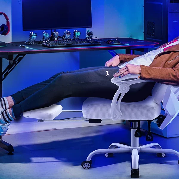 Accoudoir de connexion rembourré:La courbure des accoudoirs de connexion s’adapte à la courbure des bras naturellement détendus, vous permettant de placer votre bras et de vous reposer confortablement dans une position confortable. Un rembourrage supplémentaire sur l’accoudoir offre un confort et un soutien supplémentaires.