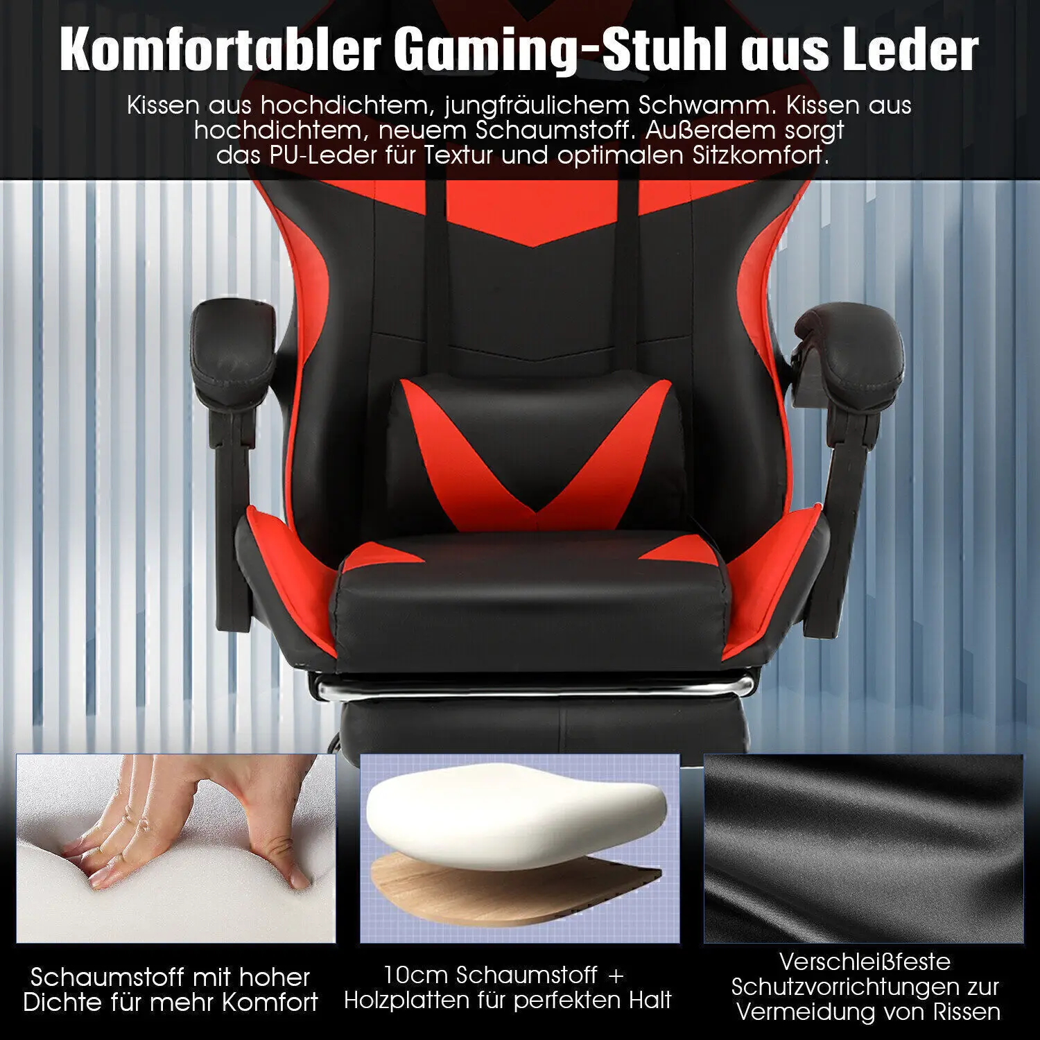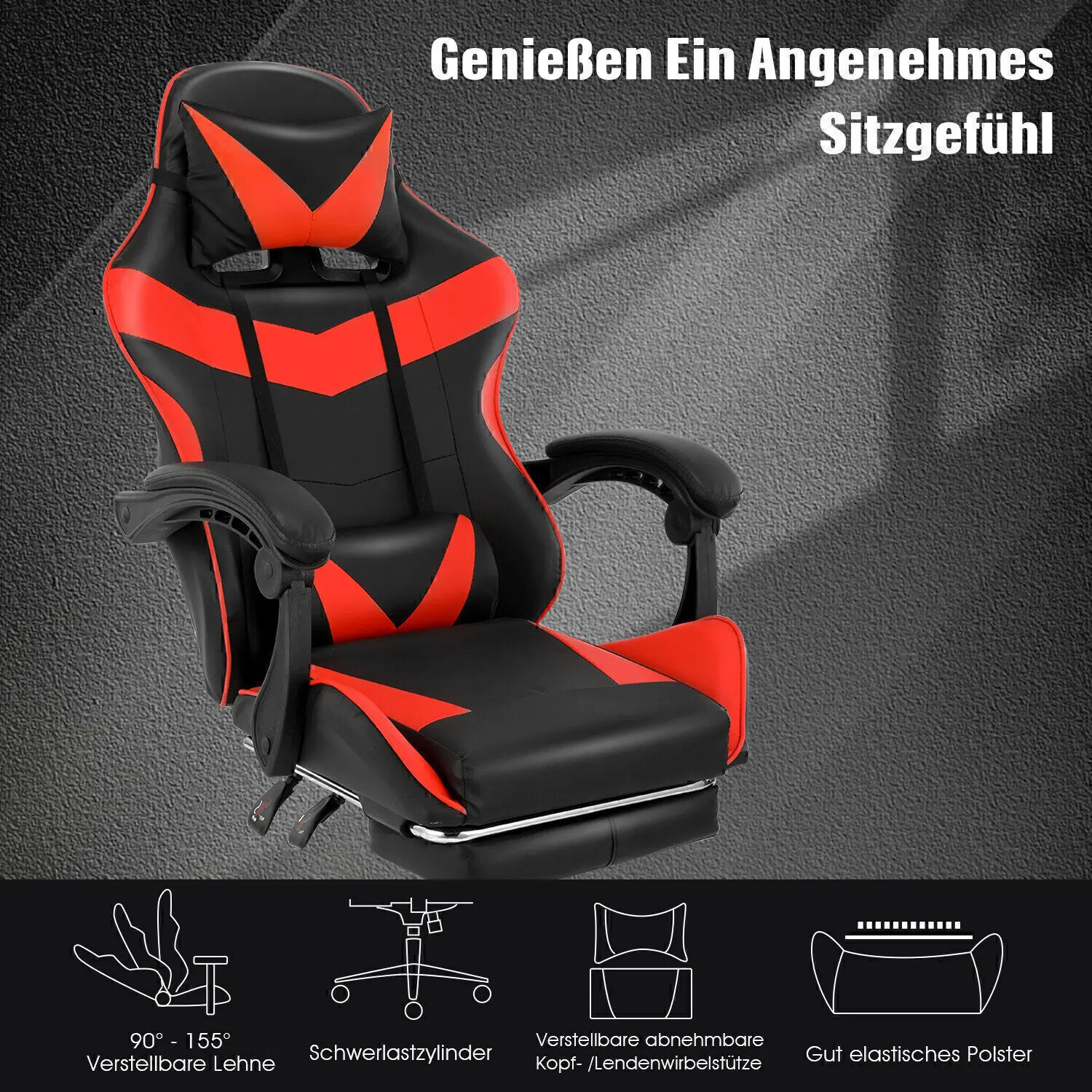 Chaise de jeu de massage, chaise d’ordinateur avec repose-pieds et support lombaire, chaise de jeu réglable en hauteur avec 360 ° -Siège pivotant et H