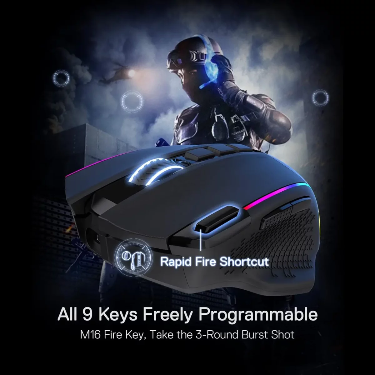 - Keybinding facile avec Macro – Les 9 boutons programmables sont tous modifiables avec des combinaisons de touches tactiques personnalisables dans quel que soit le jeu ou le travail que vous engagez.1 tir rapide + 2 boutons macro latéraux vous offrent une meilleure expérience de jeu et de travail.