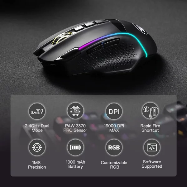 - Sensor model: Pixart 3370 (19000 DPI | 400 IPS | 50 go)