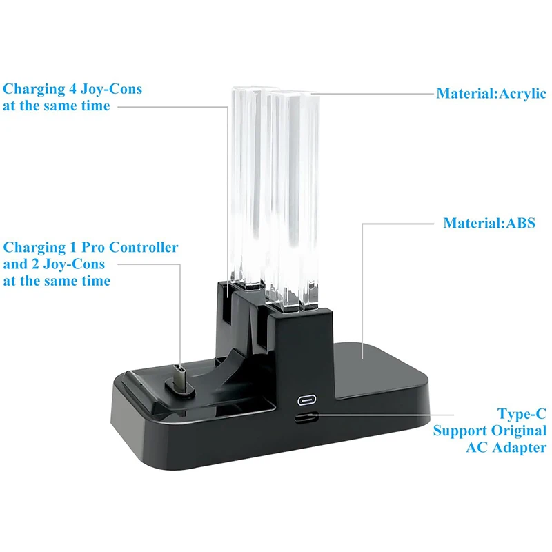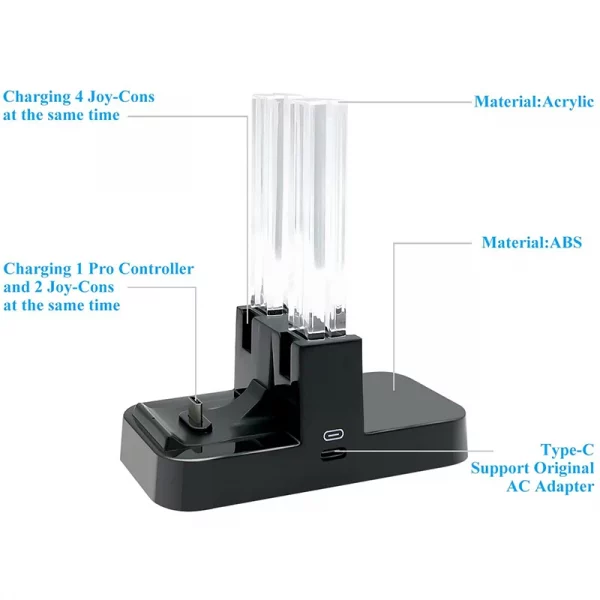 1. Permet de charger 4 manettes Switch ou 1 manette Pro et 2 manettes Switch (ne peut pas être utilisé pour charger la console).